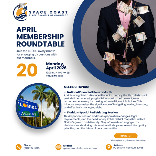 The Space Coast Black Chamber of Commerce, Inc. is dedicated to promoting economic development and business opportunities for Black-owned businesses in the Space Coast. Click here for resources to help your business grow.